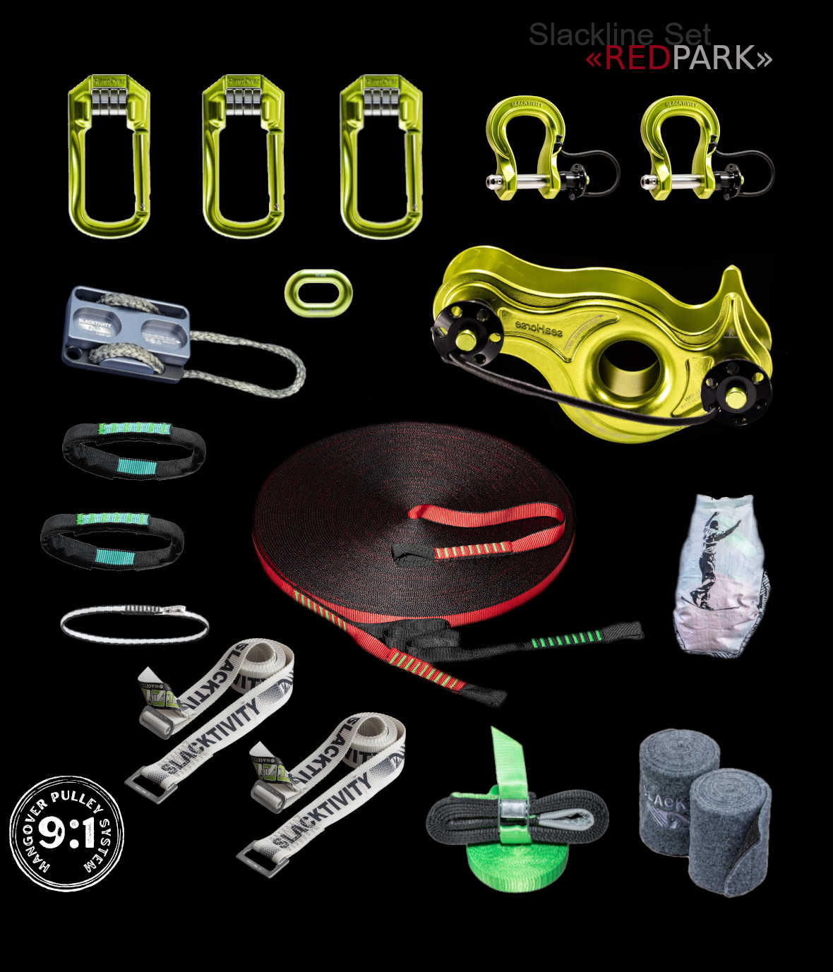 The REDPARK Kit is the right choice for slackliners who want a very soft slackline to play and bounce on. The super dynamic webbing invites you into tricking and surfing, over the ground or water. Acquiring this longline set is halfway to get you highline setup, as many you be able to use many of it’s components to that end. By purchasing the REDPARK Longline kit you get to save good money, more than 10% on all products, compared to buying the included components individually.